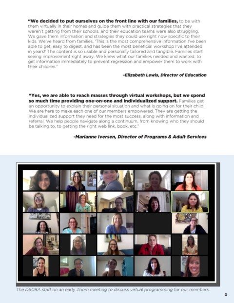 The DSCBA staff on an early Zoom meeting to discuss virtual programming for our members.