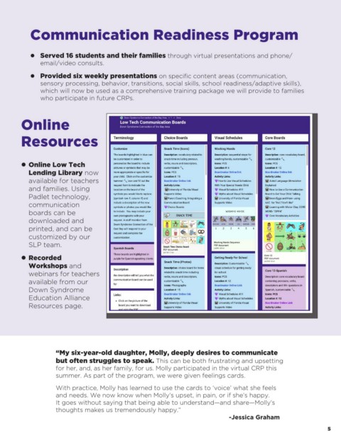 for her, and, as her family, for us. Molly participated in the virtual CRP this