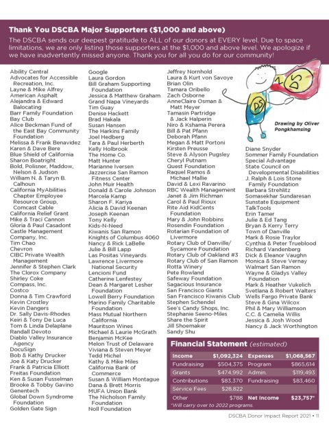 Thank You DSCBA Major Supporters ($1,000 and above)