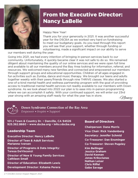 Executive Director: Nancy LaBelle Secretary: Jennifer Schmid
